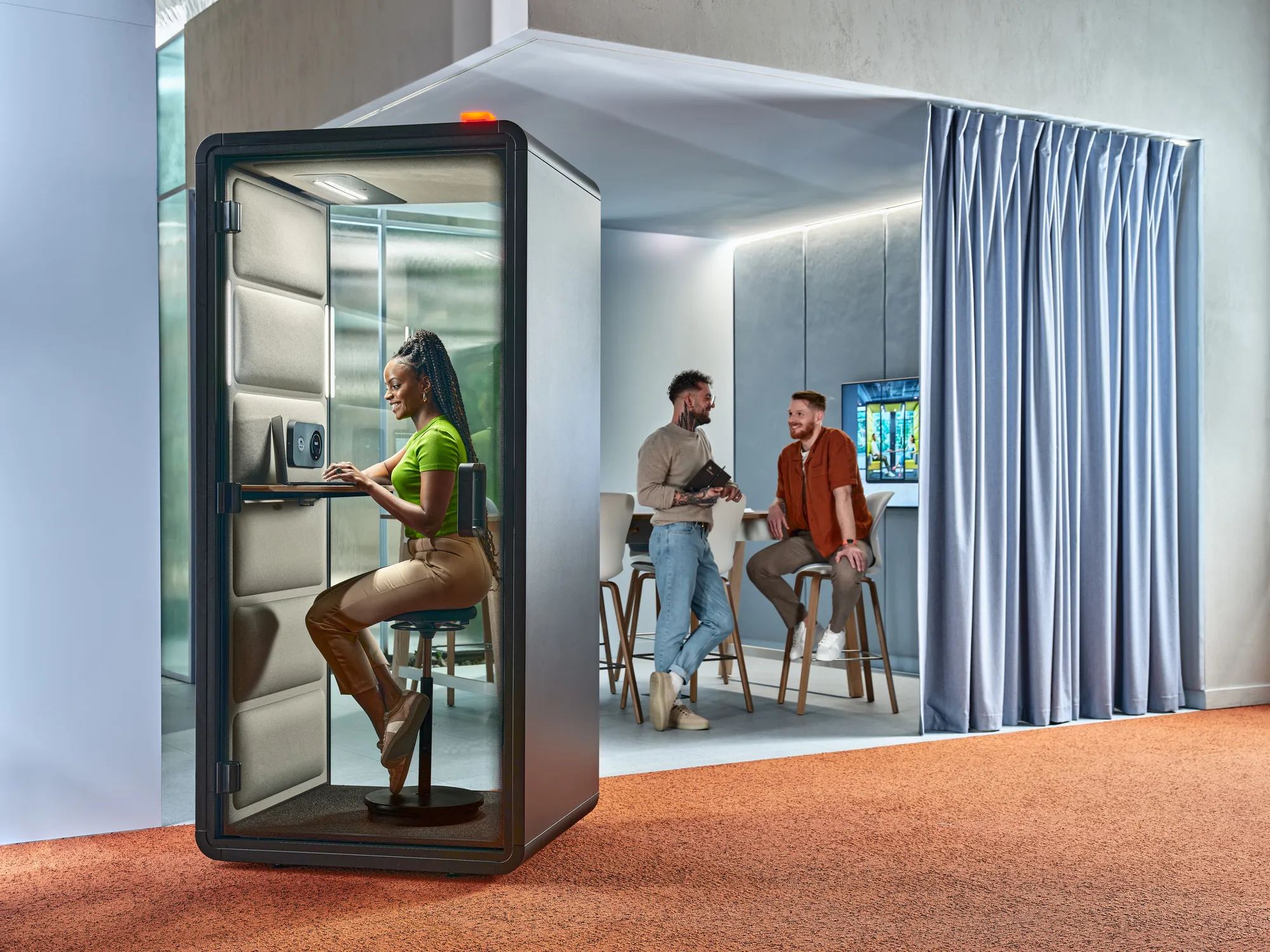Organisaties presteren beter met ruimte voor neurodiversiteit, dat vraagt om een flexibele en aanpasbare werkomgeving. Onze cabines zijn daarom: vrij in te delen, rolstoeltoegankelijk, met instelbaar licht en ventilatie en verplaatsbaar bij veranderende behoeften. Zachte kleuren en lichtinstellingen afgestemd op lichtgevoeligheid en een CAR-certificaat voor geschiktheid bij autisme.